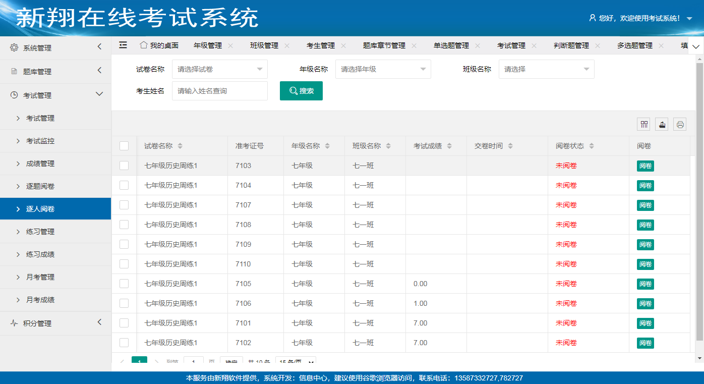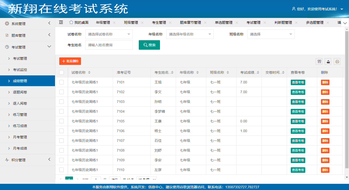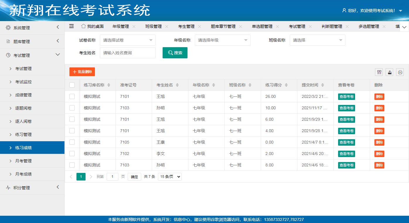 7、練習、月考管理支持隨機抽題組卷、查看成績。