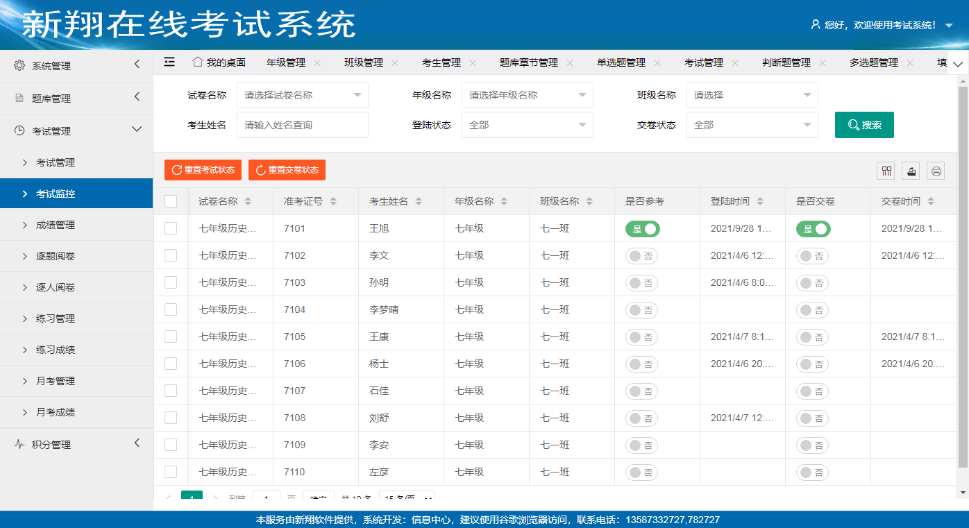 5、考試監(jiān)控可查看學生登錄及交卷情況。