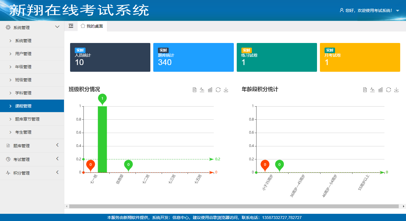 在線考試系統(tǒng)是一套網絡版在線考試學習系統(tǒng)??扇斯そM卷、自動抽題組卷;可統(tǒng)一考試、可隨機練習;題目可隨機亂序、可固定順序;支持單選、多選、判斷、填空、問答等題型,題目中支持圖片上傳、音視頻上傳功能??陀^題自動閱卷、主觀題可人工在線閱卷。并且根據(jù)考試、練習、月考、登錄系統(tǒng)實現(xiàn)積分功能。